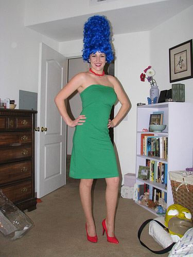 Si vous venez d’une autre planète (la planète NextGen par exemple), Marge Simpson est la maman de Bart, Lisa et de Maggie (et aussi un peu d’Homer puisque c’est un grand enfant). Si vous êtes grande et longiligne alors le cosplay de Marge Simpson est idéal pour vous. Et en plus, sa tenue est simple, il faudra juste vous peindre tout en jaune et surtout avoir une belle perruque bleue. C’est bon, vous avez tout ça à la maison ? Et bien vous êtes bien étrange ^^. Allez hop, il est l’heure de vous présenter de bien jolies cosplays de Marge Simpson: