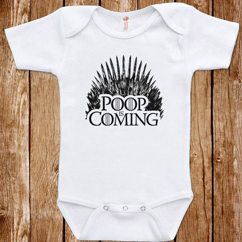 Non ne m’obligez pas à traduire svp ^^, voici de quoi faire marrer les parents fans de Game Of Thrones… non pas la peine de me poser la question je n’ai toujours pas regardé un seul épisode ! Egalement disponible en différents coloris car le blanc c’est bien mais il ne restera pas blanc bien longtemps :