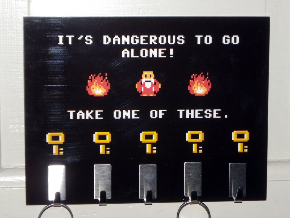 Si ce sont vos amis, il y a de fortes chances pour qu’ils comprennent la référence à Zelda et si ce n’est pas le cas et bien….. changez d’amis ^^. Simple à poser, il suffit de mettre deux vis/clous pour l’accrocher.