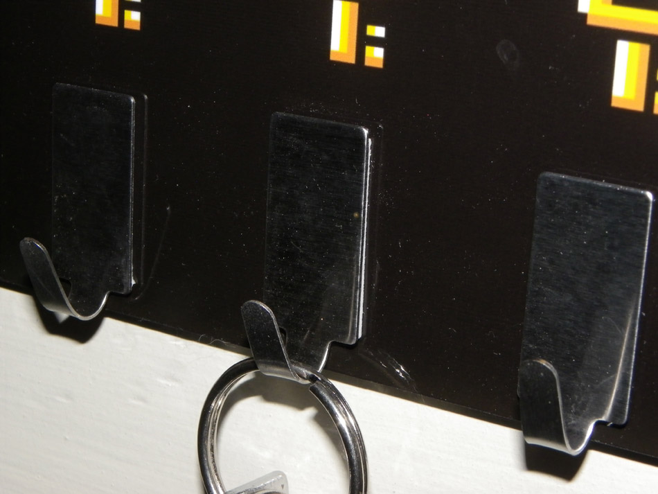 Dans mon cas j’ai opté pour du scotch double face comme cela on évite de faire des trous de partout. Et comme dans tout bon Zelda qui se respecte, on doit partir à la recherche de clés pour trouver des trésors et sauver la princesse, quoi de plus normal que d’avoir un accroche-clés Zelda ?