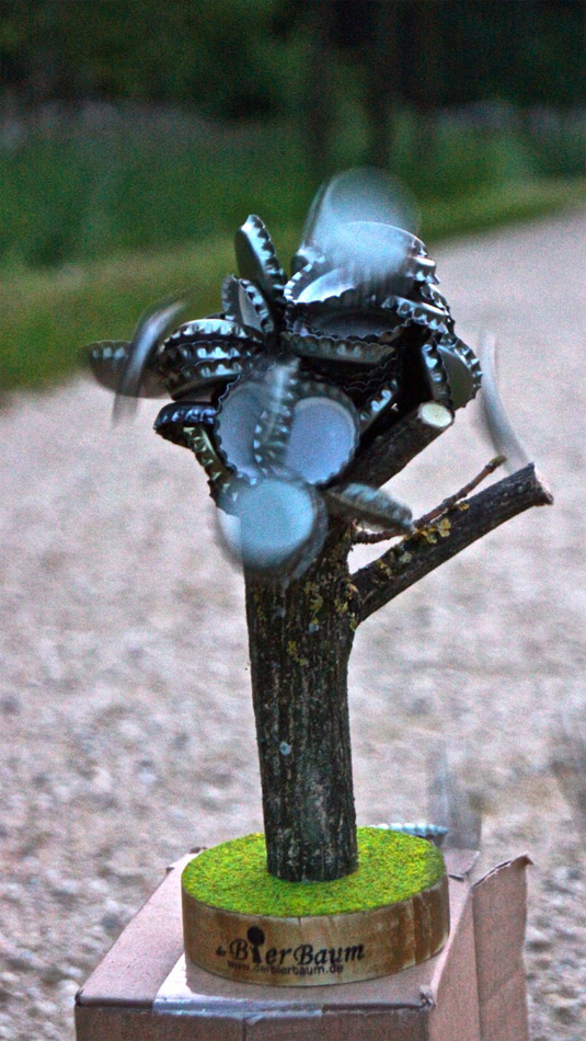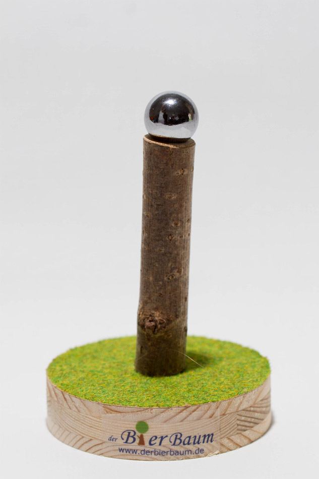 Comme vous pouvez le voir ci-dessus, l’arbre dispose d’un aimant en forme de boule. Il suffit de jeter ses capsules de bière dessus pour faire un bien joli arbre:
