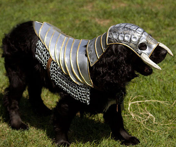 La muselière zombie pour chien est juste culte mais peut-être que vous préférez le thème médiéval ? Alors cette armure pour chien est faite pour vous ou du moins pour votre animal de compagnie. Bien entendu cela ne fera pas de votre toutou un chien de combat et d’ailleurs ne le faite pas ! En tout cas votre toutou aura la classe et aucun animal ne lui manquera de respect dans la rue… par contre ce ne sera pas le cas de vos voisins ^^.