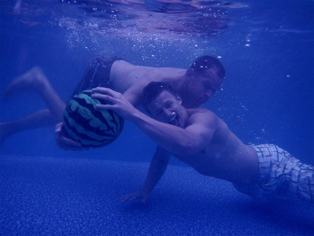 Jouer dans une piscine avec une pastèque