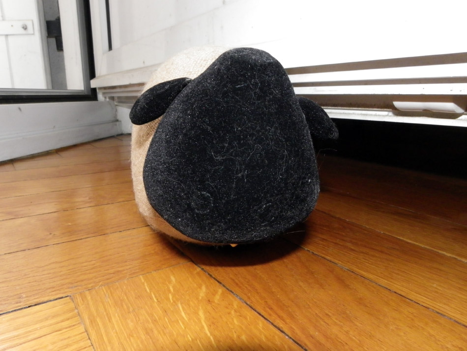 Du haut de ses 14 centimètres, ce joli mouton est super utile afin d’éviter à la porte de se refermer lorsque mon chat est dehors.