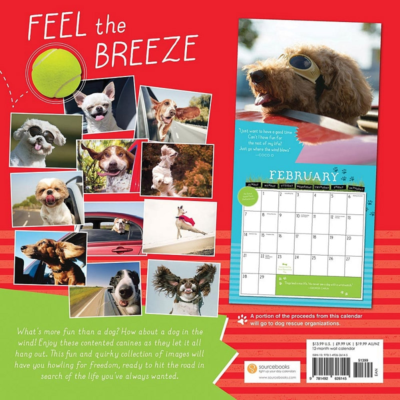 Tous les chiens présents dans ce calendrier ne sont pas à une fenêtre de voiture. Non par contre ils sont tous dans le vent et c’est vraiment original:
