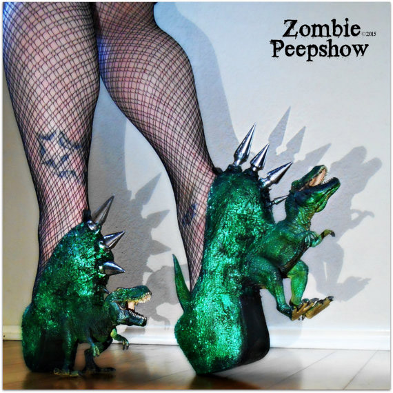 Après les magnifiques chaussures à talon R2-D2, voici un modèle T-Rex qui devrait faire plaisir aux fans de Jurassic World. Pour info, je suis allé le voir ce week-end au cinéma et j’en avais tellement entendu de mauvaises critiques qu’au final j’ai beaucoup aimé :). Mesdames vous aimez être sexy mais vous aimez par dessus tout les dinosaures et plus particulièrement les T-Rex ? Et bien ce qui va suivre va vous plaire: