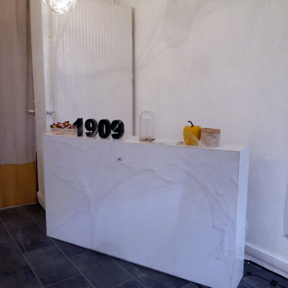 Le principe est simple: il faut s’évader d’une pièce ! Vous allez me dire, c’est facile, tu ressors par où tu es entré. Et bien non ce n’est pas si simple que cela, sinon le principe serait un peu nul ^^. Afin de pouvoir vous échapper, il va falloir trouver des indices, ouvrir des coffres, fouiller le décor et tout cela dans un ordre bien précis. Mais rassurez-vous, vous ne serez pas seul dans cette aventure, car c’est bien connu: le plaisir se multiplie à plusieurs. Cela permet de créer un esprit de cohésion, ce n’est pas pour rien que les Escape Games sont plébiscités par les entreprises (rien de mieux pour une journée incentive). Dixit Wikipédia, il existe plus de 150 établissements dans toute la France, donc jetez un œil sur le net, il y en a certainement un pas loin de chez vous. Mais si vous êtes de Saint Etienne, je pense que la suite va vous plaire puisque je suis ici pour vous donner mon avis sur 1909 Escape Game ! Voici quelques photos de l’entrée pour Halloween :