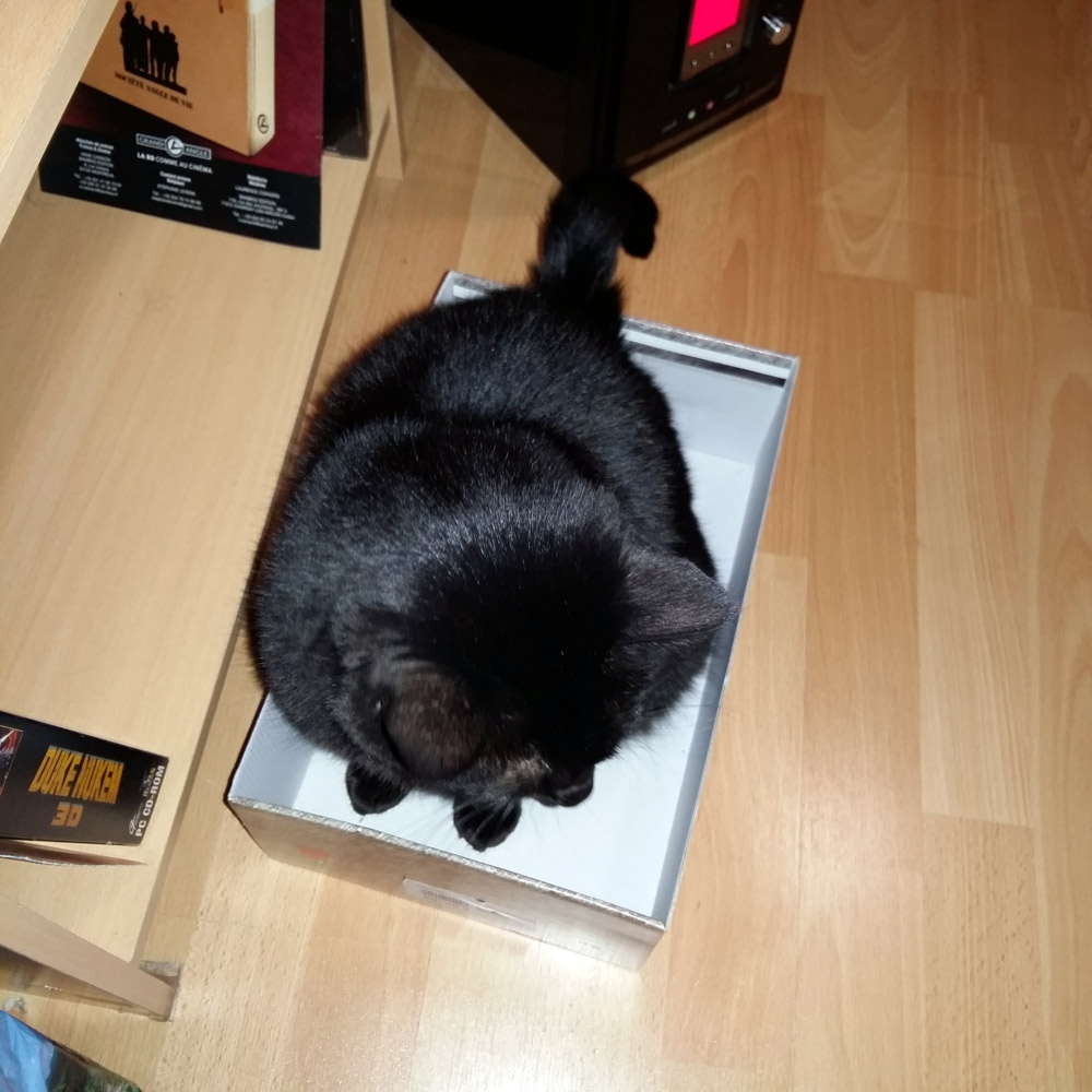 Du coup j’ai tenté de recréer un Escape Game chez moi, pour le moment Dingo n’a pas réussi à sortir de sa boite ^^ :
