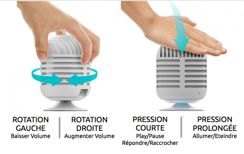 Comme l’indique la photo, le système est vraiment simple: on tourne d’un côté ou de l’autre pour baisser ou monter le volume. On veut répondre à un coup de téléphone ? Hop on appuie légèrement dessus (et appuie long pour l’éteindre).