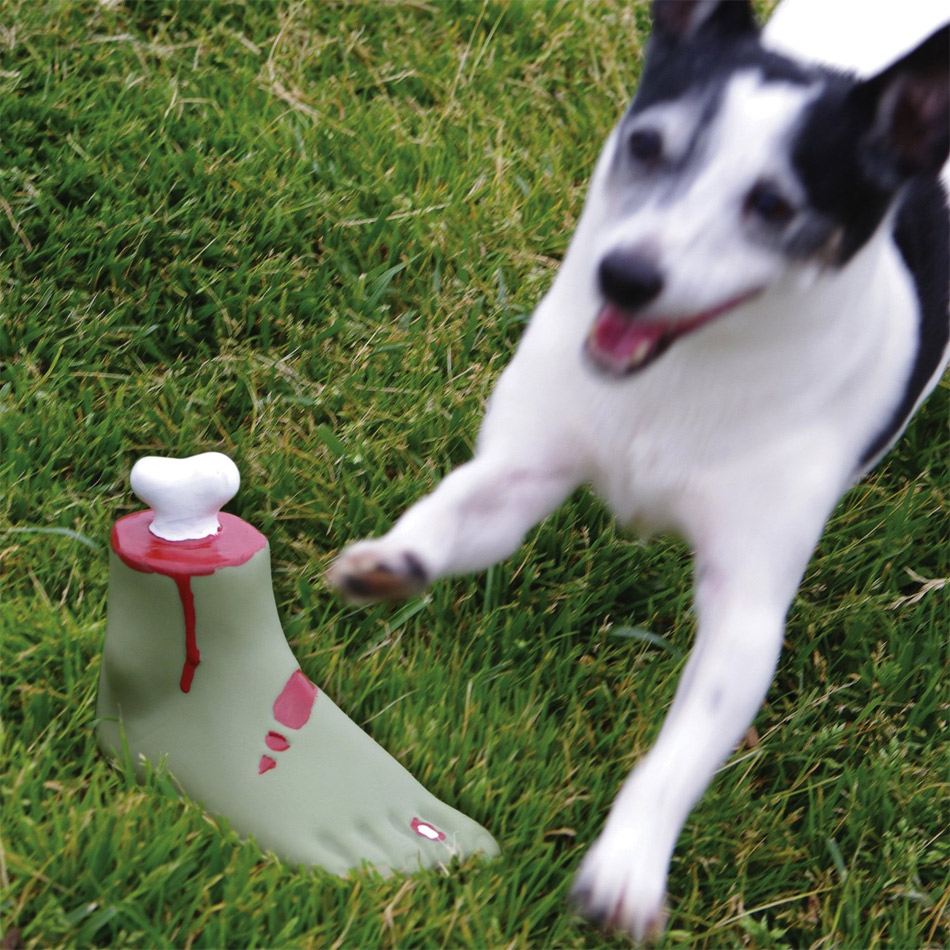 Bon ok je vous l’accorde, ça doit faire vraiment bizarre de voir un pied de zombie trainer dans son jardin ou dans son couloir. C’est même limite flippant pour vos invités mais au moins votre chien sera dressé en cas d’attaque de zombies !!!
