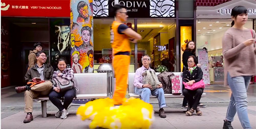 Il se promène dans la rue avec le nuage magique