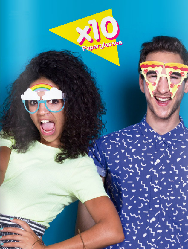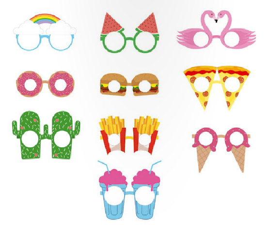 Vous aurez du choix entre la paire de lunette donuts, hamburger, pizza, cactus, glace, flamant rose etc….