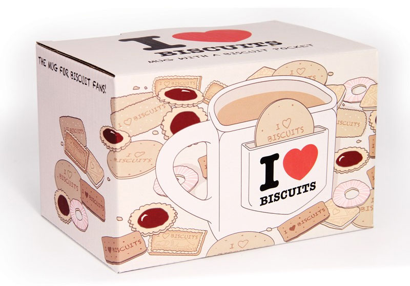 Le principe est simple, ce joli mug dispose d’un rangement avec l’indication: I Love Biscuits ! Quoi de mieux que de boire un bon café sans devoir chercher son biscuit ? Idéal quand on doit se déplacer tout en ayant son mug en main, votre cookie ne vous quittera jamais.