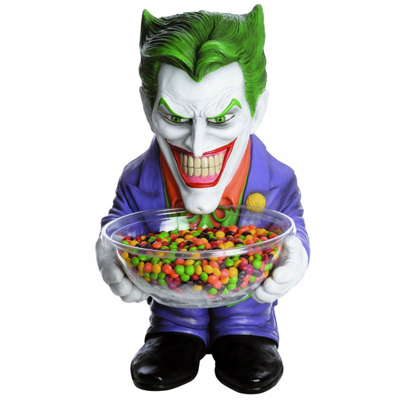 J’ai vu dernièrement ce genre de porte-bonbons dans une boutique de BD et je dois avouer que le rendu est plutôt cool. On ne s’en rend pas forcément compte sur la photo mais le Joker mesure tout de même 50 centimètres. De quoi ranger un grand nombre de bonbons, je pense que pour Halloween il fera fureur.
