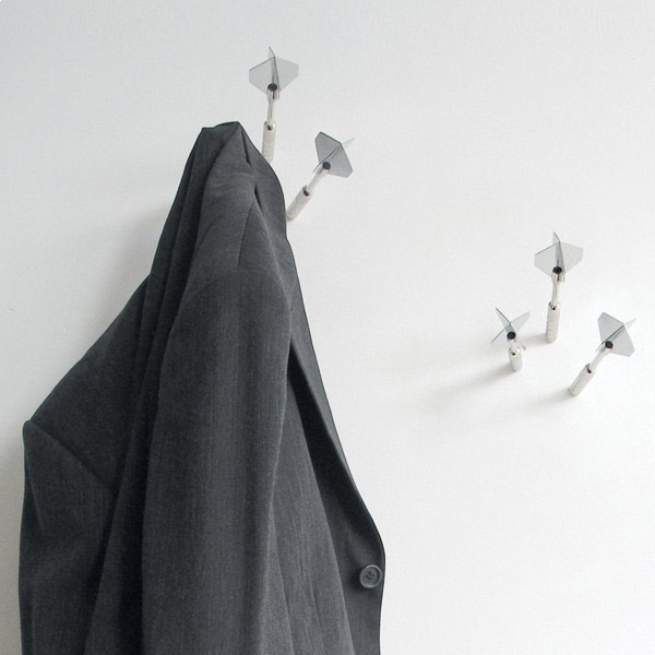Ce porte manteau est trop cool, imaginez: vous avez des amis qui débarquent chez vous, demandez leurs de se déshabiller (limitez tout de même à la veste, enfin vous faites bien ce que vous voulez avec vos amis ^^). Et là vous déposez leurs vestes sur un porte manteaux qui ressemble à une fléchette !!! C’est juste trop la classe:
