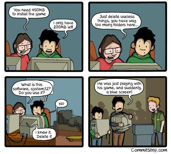 Oui mais comment trouver de l’espace libre sur on ordi ? Supprimer un film ? Non je ne l’ai pas encore regardé. Supprimer des photos, non j’y tiens. Mais alors que faire ? Et bien tenter de supprimer tout ce qui ne nous semble pas nécessaire ^^:
