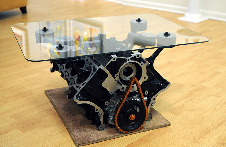 Vous êtes un(e) fan de voiture ? Pour vous, il est impensable de conduire une voiture électrique ? Vous aimez les voitures avec les gros moteurs qui font du bruit ? Alors cette table basse moteur de Mustang est faite pour vous. Vous pourrez également compléter votre décoration avec le barbecue moteur de V8. Si vous n’avez pas trop d’argents, vous pouvez aussi opter pour créer une table basse avec une jolie jante et un support en verre.