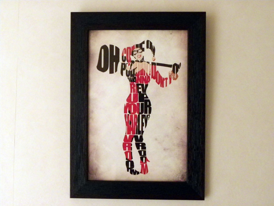 Souvenez-vous, il y a quelques temps, je vous ai présenté le poster typographie Harley Quinn :). Et bien j’ai finalement craqué, vous le savez, cela fait très longtemps que je suis à la recherche de jolis tableaux pour mon nouveau chez moi. En gros, il m’aura fallut presque une année pour trouver enfin le style qui me correspond (et aussi à madame puisque nos gouts sont parfois différents). Finalement c’est sur Fine Art America que j’ai trouvé ce qu’il me fallait: