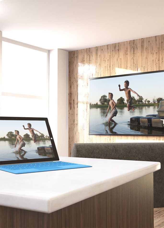 N’importe qui pourra utiliser le Wireless Display Adapter de Microsoft, il est simple d’utilisation. On branche l’HDMI, l’USB sur un écran TV (ou PC) et on sélectionne le partage.