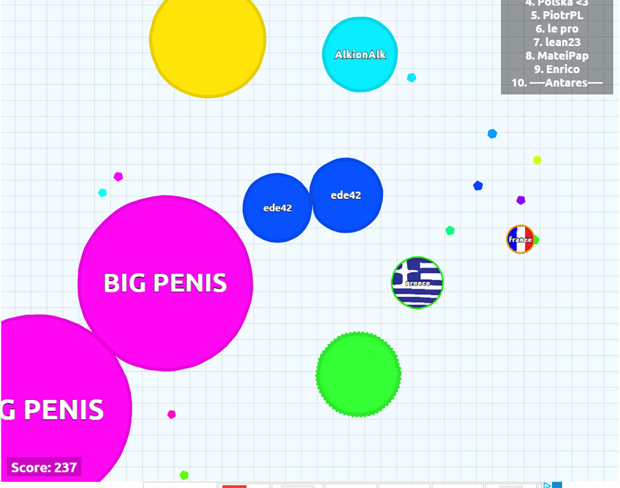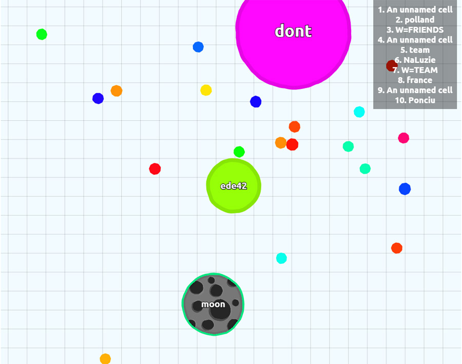 Agario est un jeu tactique puisqu’il est possible de séparer son personnage en plusieurs parties pour tenter de manger le maximum d’items. Mais attention, en étant plus petit vous risquez de vous faire manger: