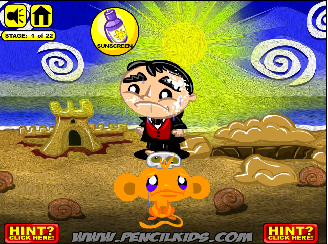 Ces monkeys sont trop mignons, non mais franchement regardez l’animation avec les larmes qui coulent (j’ai l’impression d’être immonde en disant cela ^^). Le principe de ce jeu est simple, il vous faudra fouiller dans le décor afin de pouvoir débloquer la situation.