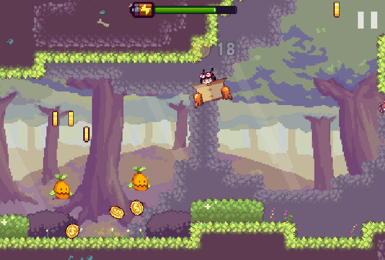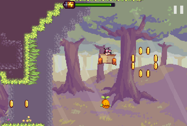 Il reprend des éléments des jeux vidéo les plus connus, il vous évoquera par exemple Sonic lorsque vous vous ferez toucher par un ennemi (avec perte de pièces). Mais tout en copiant des jeux, il a son propre univers bien sympathique. Vous allez commencer l’aventure dans un carton volant…. bin quoi il faut bien commencer non ^^ ?