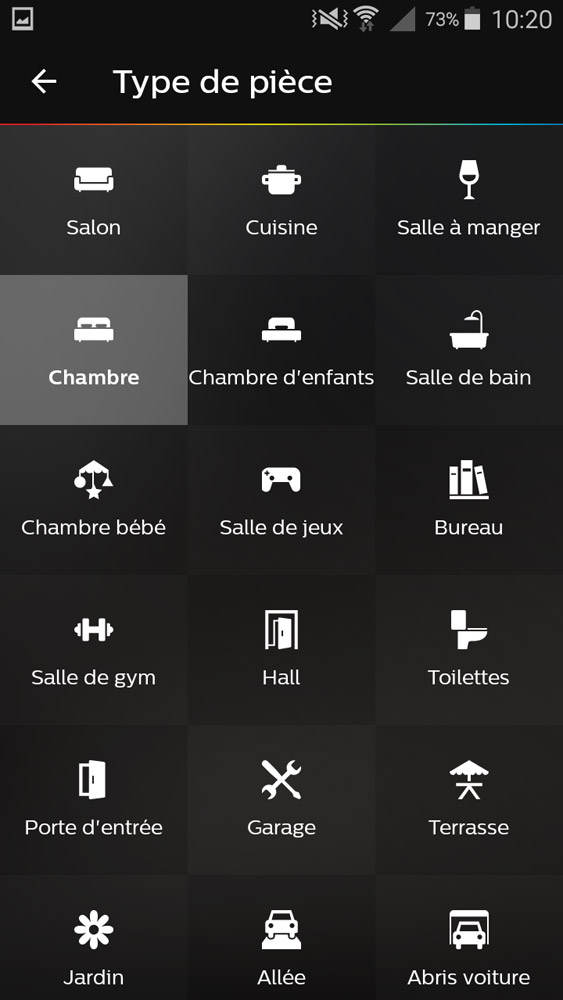 Vous vous souvenez, il est possible d’associer jusqu’à 50 ampoules, et ce qui est juste terrible c’est de pouvoir créer des pièces pour générer l’éclairage facilement :